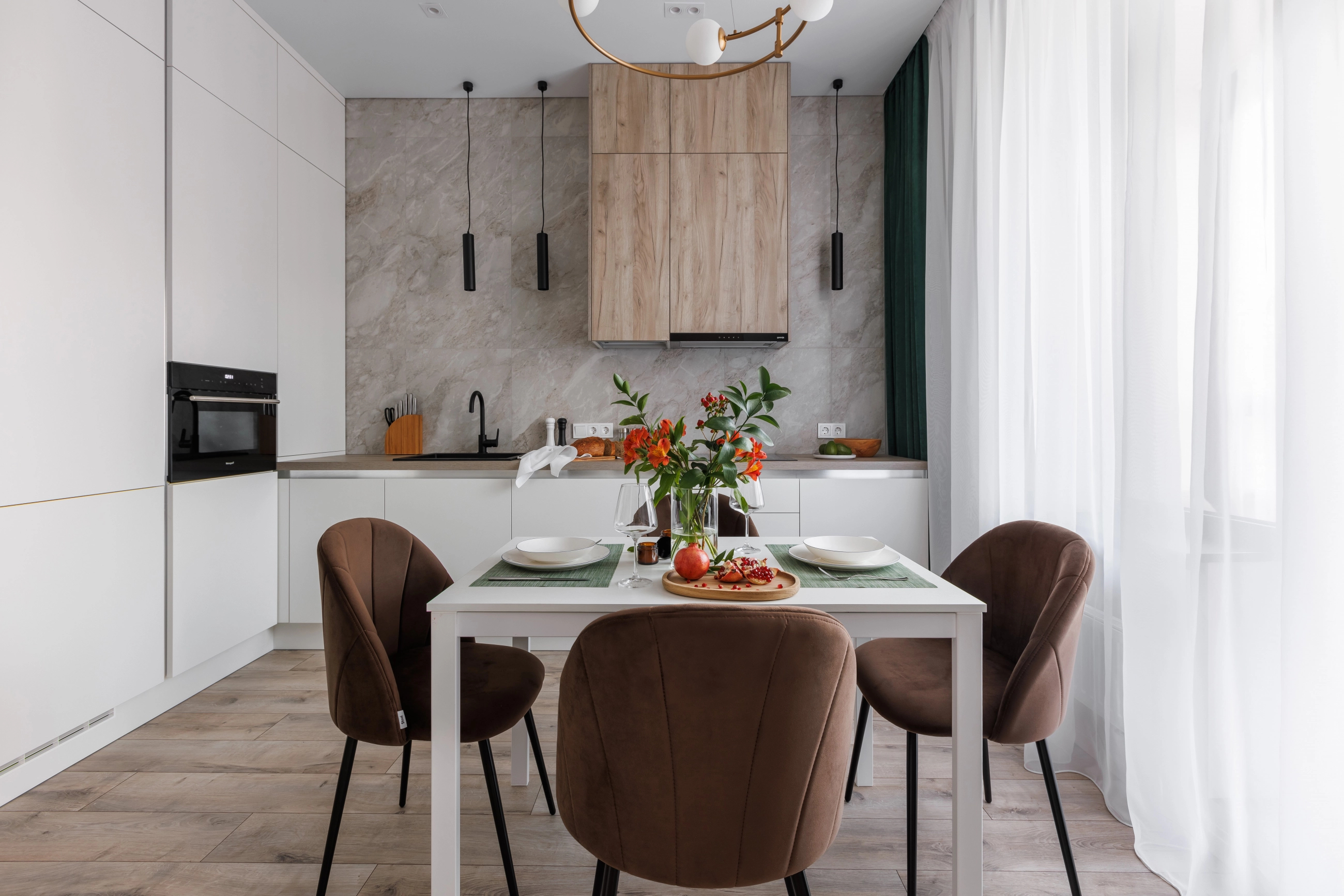 Выбирайте высококачественные материалы для отделки вашей кухни. Популярные варианты включают: