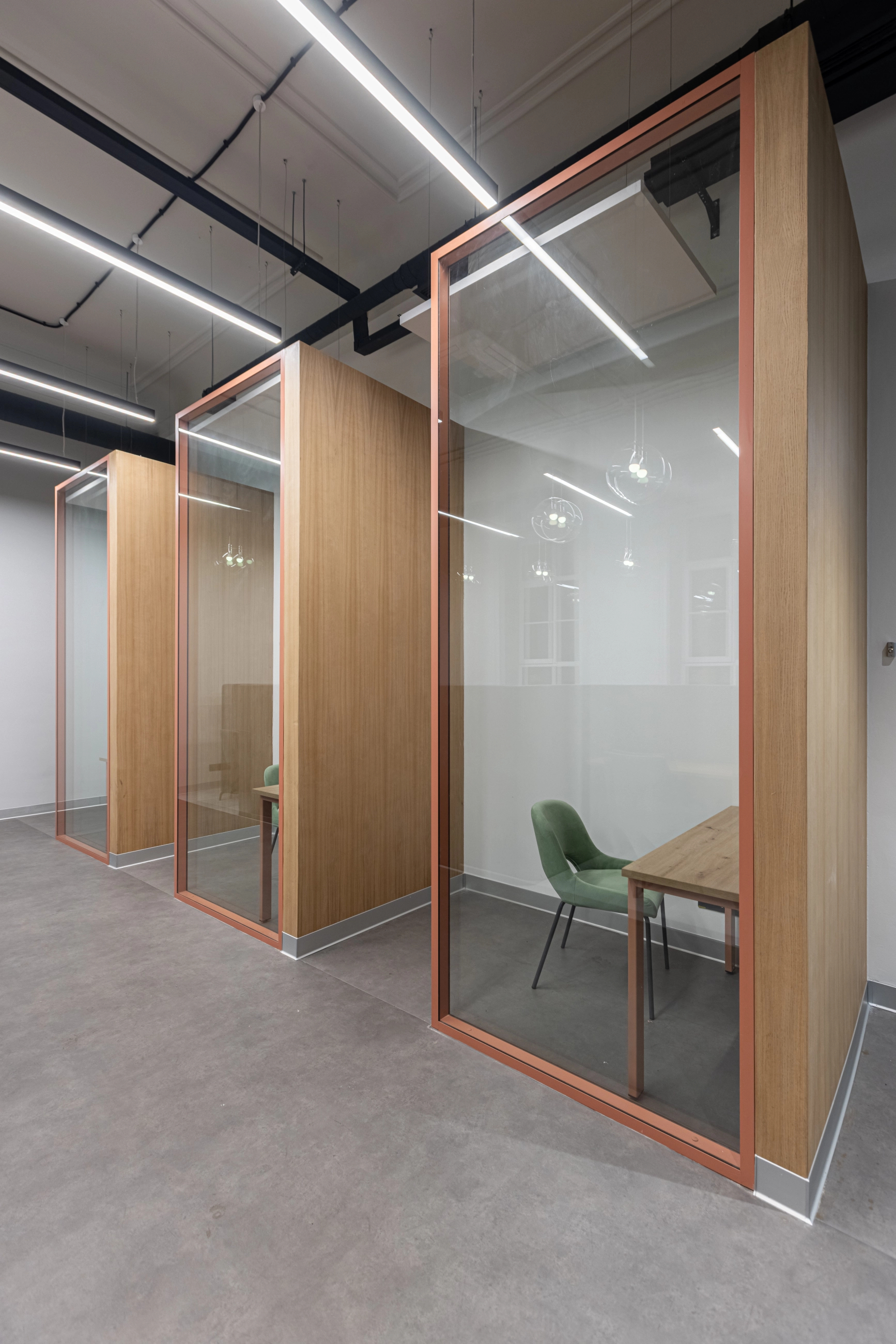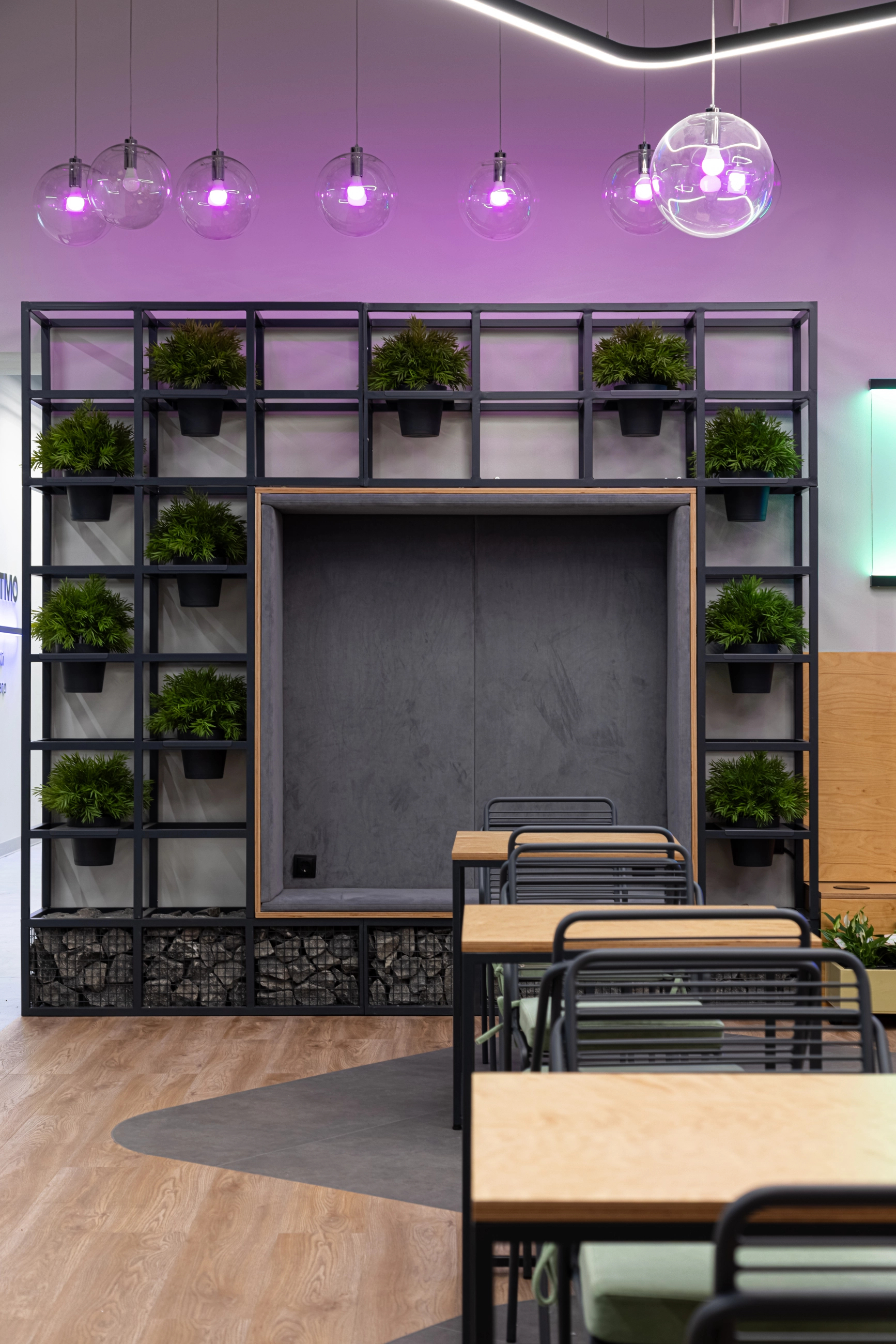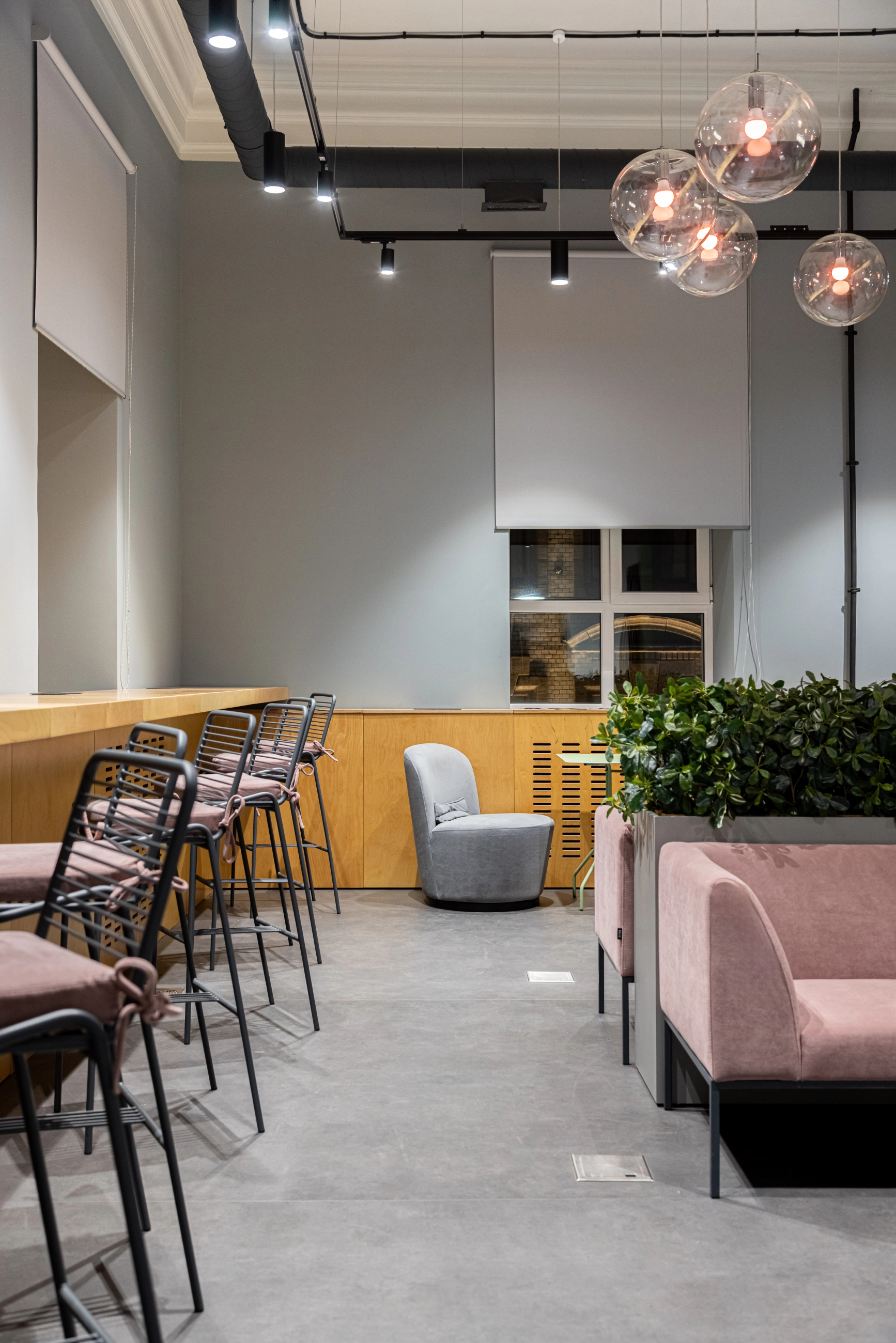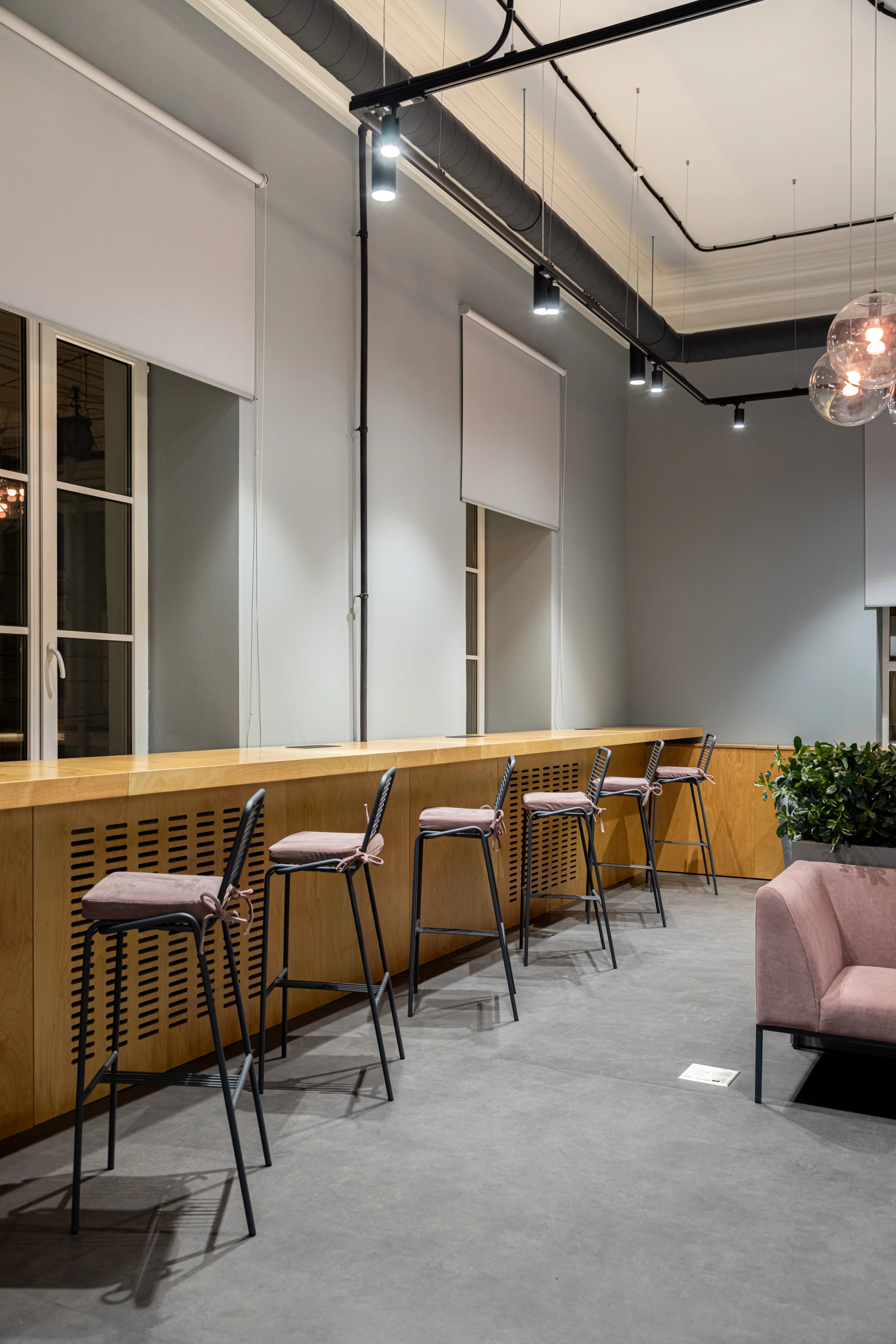 По заказу ИТМО и Сбербанка - создали пространство оборудованное всем необходимым для комфортной работы и учёбы: есть зоны для индивидуальной работы, переговорные для командных проектов и места для отдыха. Мебель изготовлена из фанеры и металлических каркасов.